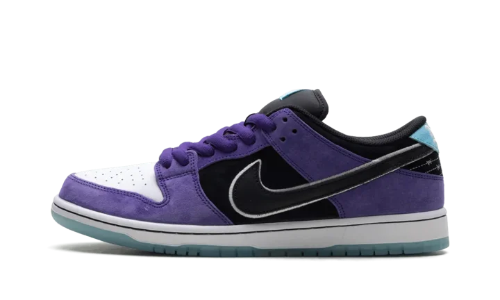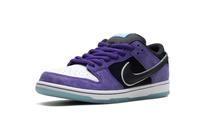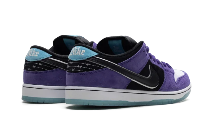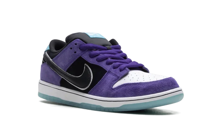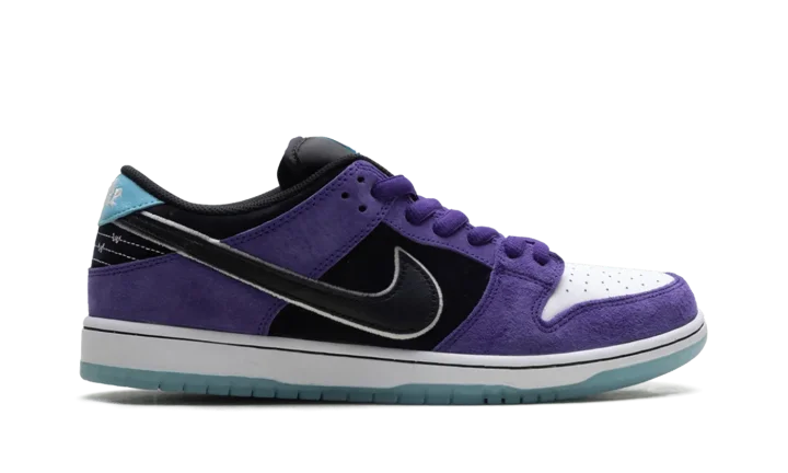 The Hayley Wilson x Nike SB Dunk Low (HJ0513 500) stands out with a bold mix of purple, black, and white tones. The design is completed with Wilson's name on the turquoise tongue tag, giving the shoe a personal touch. This colorway reflects Wilson's dynamic style, blending vibrant hues with a clean aesthetic.