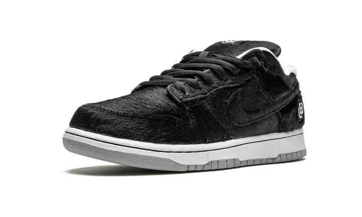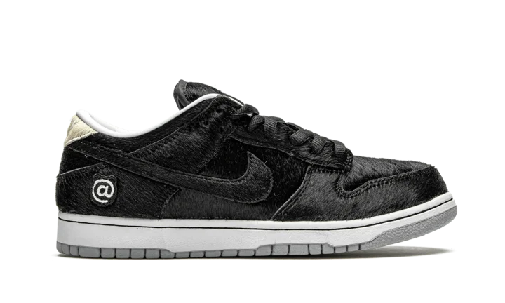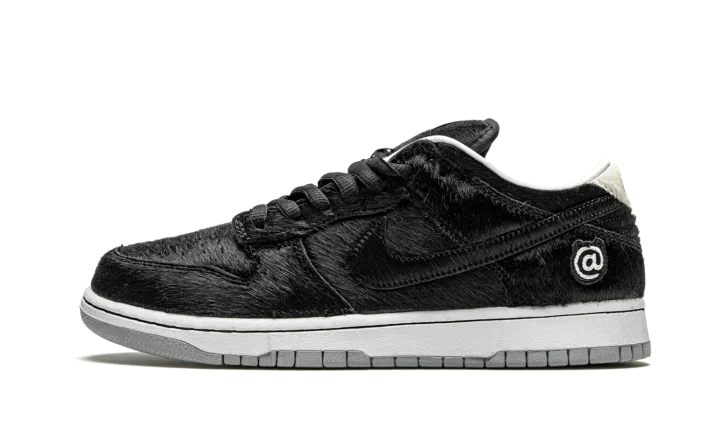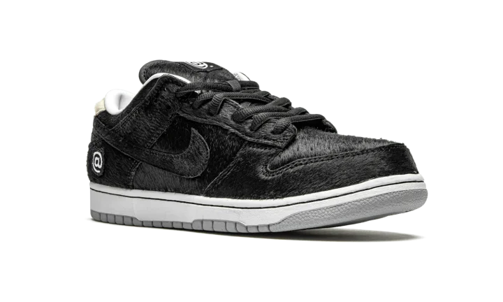 The Medicom Toy x Nike SB Dunk Low "BE@RBRICK" is a collaboration between the Japanese collectible manufacturer and Nike SB. The two entities first collaborated together way back in 2004 when the Nike SB Dunk was in its infancy. The "Medicom 1" is considered a classic Dunk colorway in the sneaker community. Here, the two come together for the first time since 2018's Dunk Zoom Elite "BE@RBRICK" on a versatile option for Nike Dunk fans. The upper features premium faux black pony hair throughout, save for the contrasting white pony hair heel tab. Tonal Swoosh detailing can be found on the mid-panel and BE@RBRICK branding dots the heel and black nylon tongue tab. A white liner, black cotton laces, and white midsole with a contrasting grey outsole put the finishing touches on yet another desirable Nike Dunk. Release date: August 22, 2020.