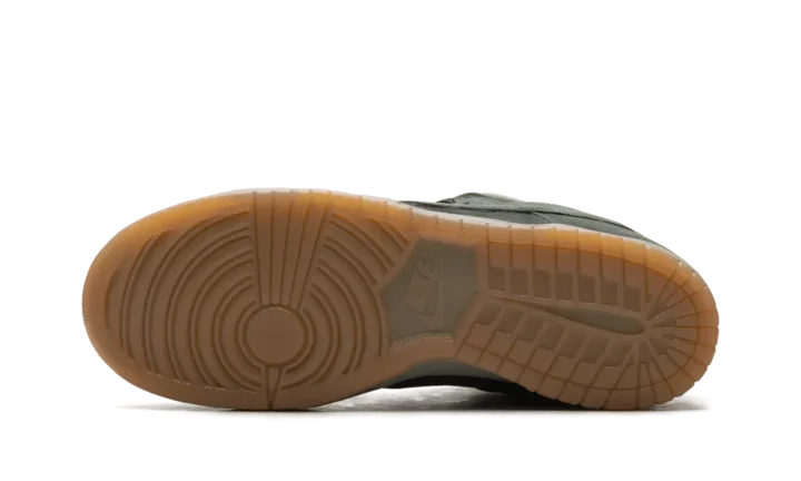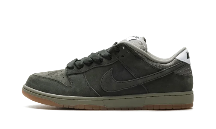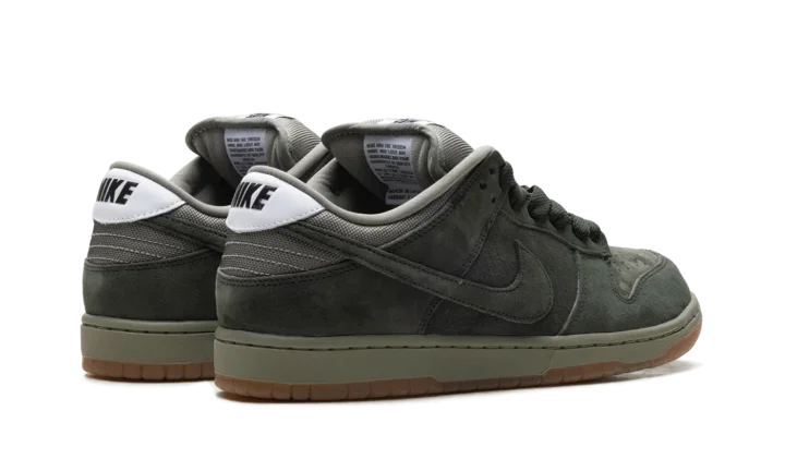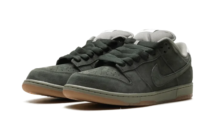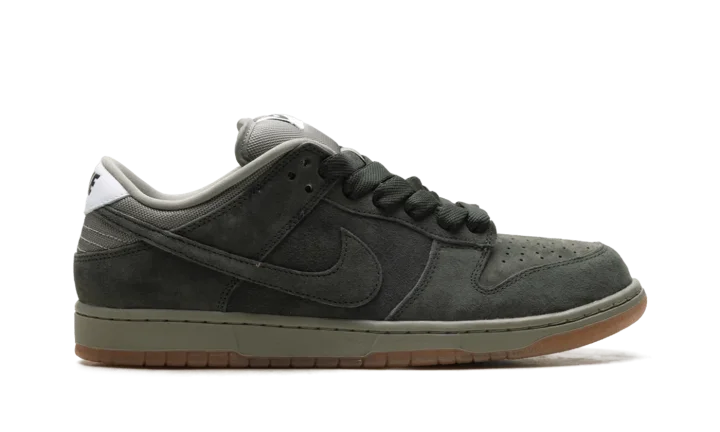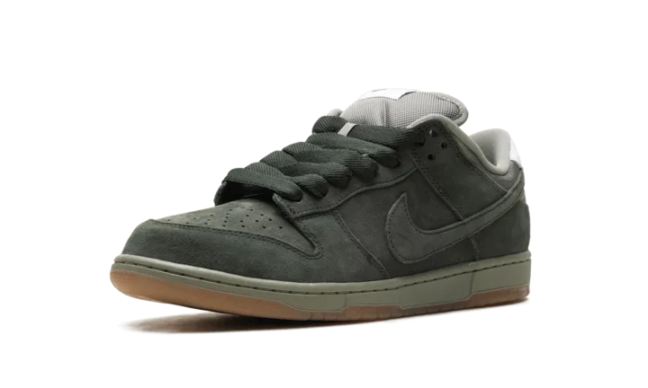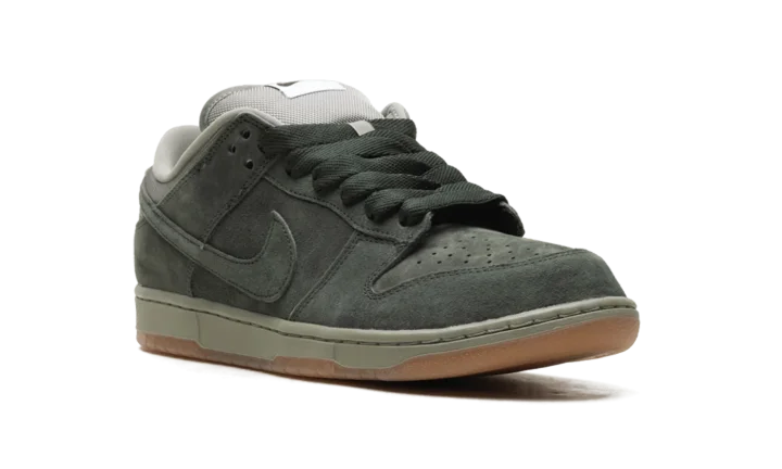 The Nike Dunk Low SB Pro B 'Sequoia' features a tonal suede upper in a lush dark green hue. Oil Green mesh is utilized on the collar and stuffed tongue, marked with a woven Nike tag.
