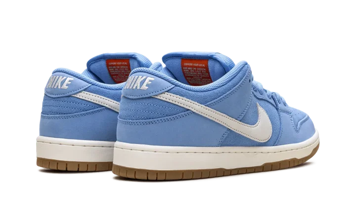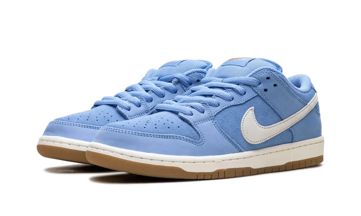 This iteration of the Nike SB Dunk Low Pro is built with a University Blue color dominating the upper. The base of the toe box, sides, and ankle is suede, while the overlays are leather. The Nike swoosh that crosses each side appears in white, while the blue heel collar also contains white embroidered Nike branding.
