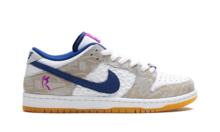 The Rayssa Leal x Nike SB Dunk Low is a collaboration by the Brazilian skateboarding sensation and Nike SB on the retro skate shoe. At 15 years-old, Leal won a silver medal at the 2020 Olympics in Tokyo, etching her name in the annals of skateboarding. As for her SB Dunk, the shoe features a white leather perforated toe with tan textile overlays and mismatched Vivid Purple and Deep Royal Blue leather Swooshes on opposite sides. Leal's "R" brand is found on the lateral side of the heel, while blue "Nike" branding is embroidered on the heel. Smiley face charms appear on the lace dubrae. Classic "Nike SB Dunk" detailing can be found on the tongue tag. Underfoot, a white midsole and gum rubber outsole complete the look. Release date: Spring 2024