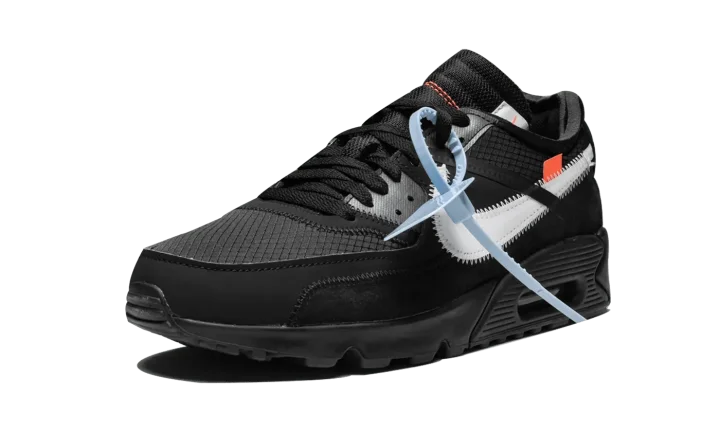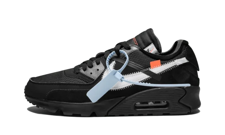 The Off-White x Nike Air Max 90 "Black" was the long-awaited follow-up to the original version of the silhouette by Virgil Abloh from "The Ten" collection. Opting for a much darker approach than the initial colorway, the new "Black" edition features an all-black synthetic and suede upper and sole unit with white accents on the Swooshes. Abloh's signature aesthetic is showcased on the deconstructed look with black taped seams and stitching, exaggerated stitching around the Swooshes, partially detached heel tabs, and bright orange detailing. The Off-White x Nike Air Max 90 "Black" released in limited quantities, and is now yet another highly sought-after offering from Abloh and Nike.
