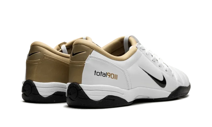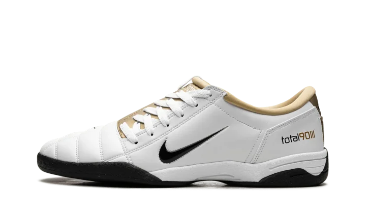 Discover the Nike Total 90 3 SP "White Metallic Gold" (HJ9351 101), a classic re-release that blends iconic design with modern appeal. This sneaker features a pristine white base complemented by radiant metallic gold accents, offering a sophisticated yet athletic aesthetic. Experience the legacy of the Total 90 series with enhanced performance and eye-catching style.