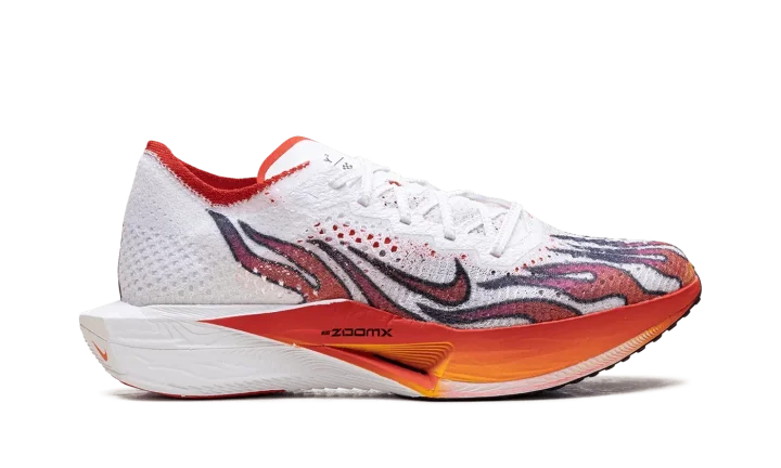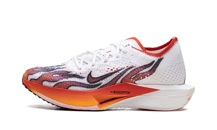 The style code HQ3504-100 is for the Nike ZoomX Vaporfly 3 Men's Road Racing Shoes in the 'White/Habanero Red-Black-University Red' colorway, commonly known as the 'Ekiden Pack' edition. This premium racing shoe is part of a collection that celebrates the Japanese long-distance relay race tradition.