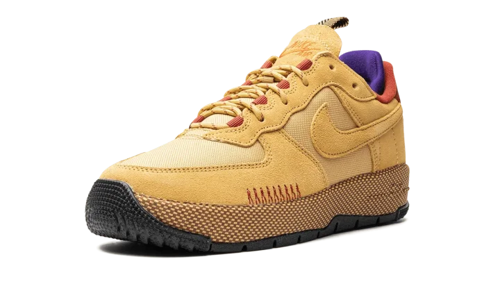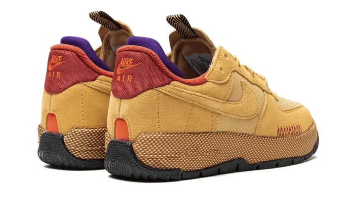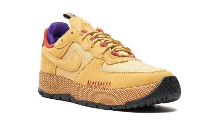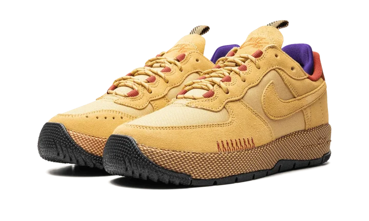 The Women's Nike Air Force 1 Wild "Wheat Gold" is a women's-exclusive colorway of the alternate version of the retro basketball shoe with a trail-inspired look. Made with durable and rugged materials, the Air Force 1 Wild has a decidedly outdoors-inspired vibe that loosely draws inspiration from Nike's ACG—or All Conditions Gear—collection. The colorway features a ballistic mesh base with soft nubuck on the overlays—both designed in Wheat Gold. A purple neoprene inner bootie provides a supportive fit. A unique hiking-inspired motif is seen on the lateral side of the forefoot. Black textile is found on the midsole. Release date: October 7, 2023