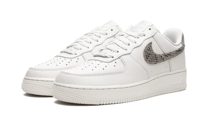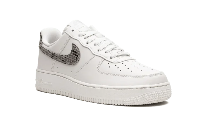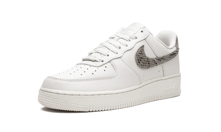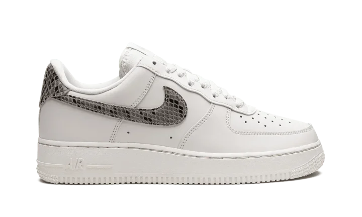 The Women's Nike Air Force 1 Low "Phantom/Snakeskin" is a women's-exclusive colorway of the popular retro basketball shoe with luxe snakeskin accenting. The Air Force 1 debuted back in 1982 as a hoops shoe and in the years since its inception, has become one of the most popular casual sneakers in the game. This colorway features a white leather construction with tonal leather overlays. A Snakeskin pattern appears on the Swoosh logo on either side of the shoe as well as on the heel tab. "Nike Air" branding is embroidered on the heel and printed on the tongue tag. Underfoot, a white rubber midsole completes the look. Release date: October 19, 2022