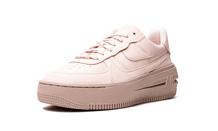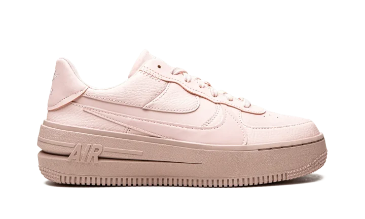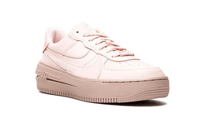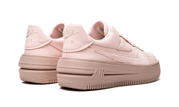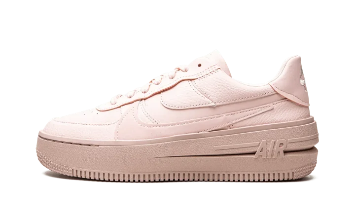 The Women's Nike Air Force 1 PLT.AF.ORM "Pink" is an alternate, women's-exclusive version of the classic sneaker that elevates its silhouette with a platform-style sole and other modifications. The progressively designed Air Force 1 PLT.AF.ORM in the "Pink" colorway features an Atmosphere, or pink, leather construction with an oversized tonal leather Swoosh layered over a cut-out Swoosh on either side. "Nike Air" and Swoosh logos are found on the heel and on the tongue. An oversized brown rubber midsole that splits on the heel, giving the shoe a platform-style design.