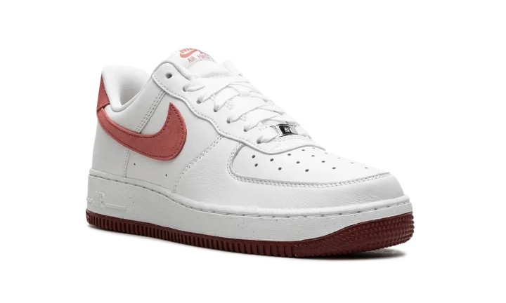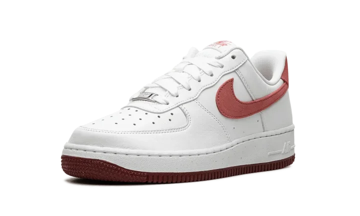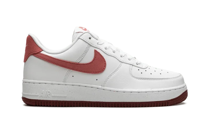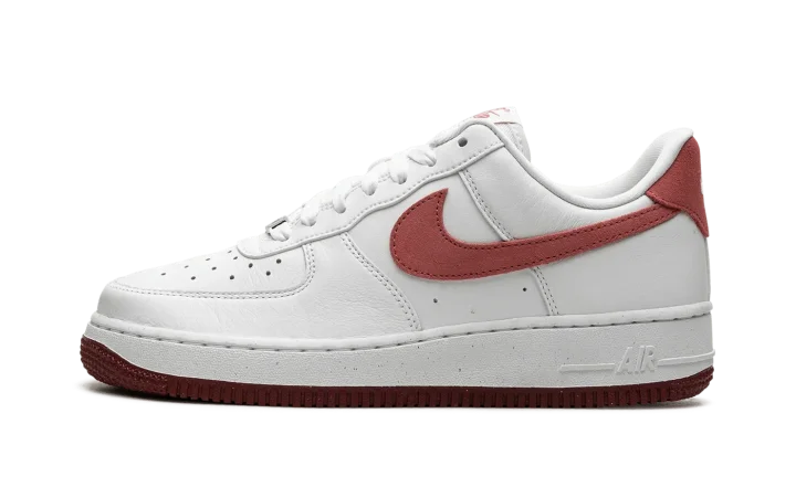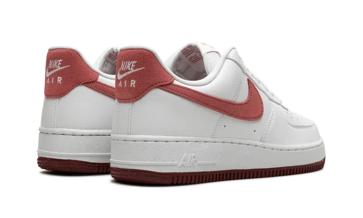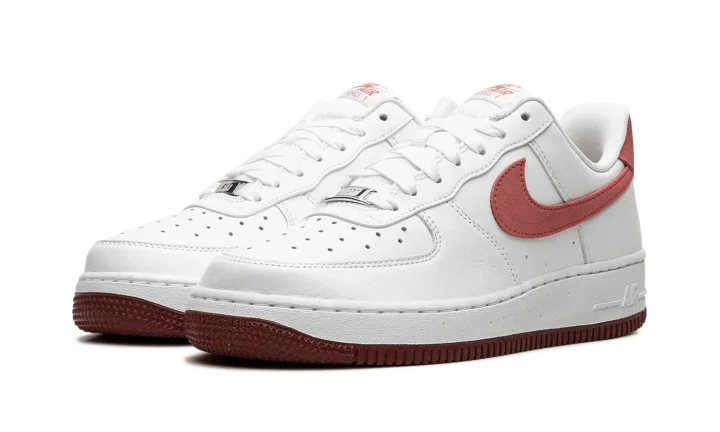 The Women's Nike Air Force 1 "White/Adobe" is a women's-exclusive colorway of the classic sneaker with a clean two-tone look. The "White/Adobe" AF1 features a white leather construction and Adobe-colored suede on the Swoosh and "Nike Air" branded heel tab. The red hue also appears on the "Nike Air Force 1" detailing on the tongue tag. An "Air" logo is incorporated into the design of the lateral heel of the white rubber midsole. A darker red rubber outsole completes the design. Release date: November 4, 2023