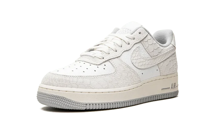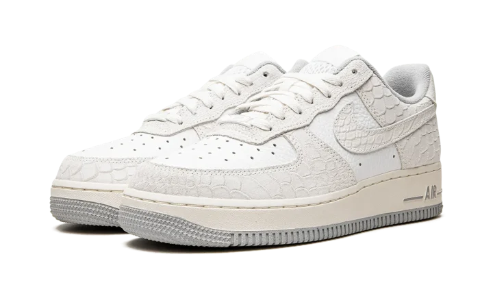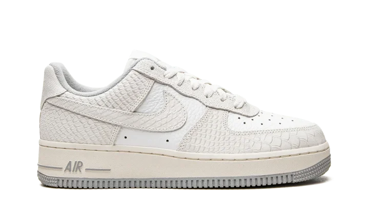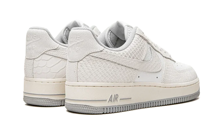 The Women's Nike Air Force 1 Low "White Python" is a women's-exclusive colorway of the lifestyle shoe that features luxurious faux-python accenting. A Spring 2022 release by Nike, the Air Force 1 Low in "White Python" brings a contemporary look to the timeless silhouette with white python detailing on its overlays and Swoosh branding. Textured white leather is found on the base of the shoe. A white open mesh tongue gives the shoe a decidedly contemporary appearance, and is a departure from the shoe's standard leather tongue. Underfoot, a cream rubber midsole with grey "Air" branding on the lateral side completes the look.