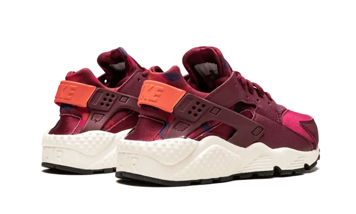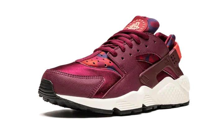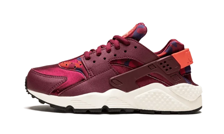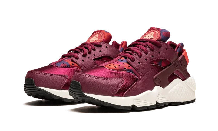 This Nike Air Huarache in women's sizes gets outfitted in a unique stylized camo print across the neoprene bootie in with a burgundy shade across the upper to match.