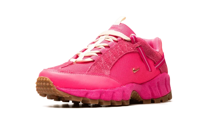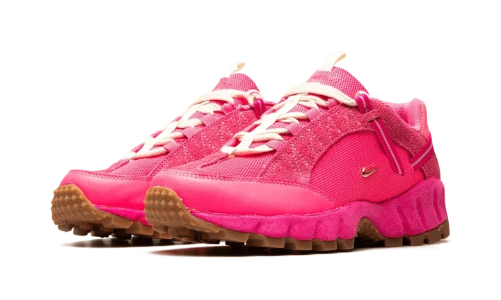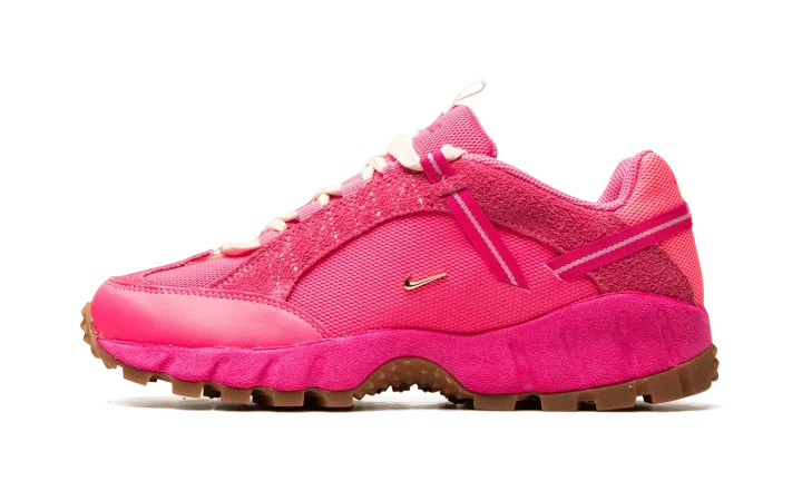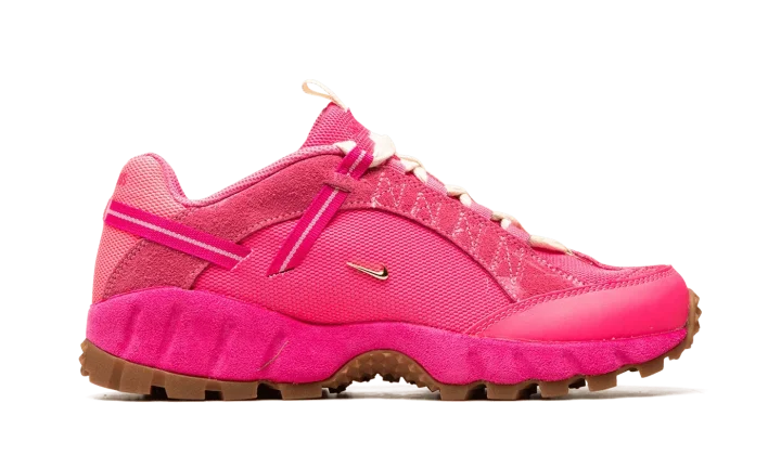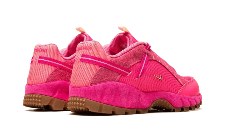 The Jacquemus x Nike Air Humara LX "Pink" is a collaboration by the Parisian clothing brand on the classic outdoors-inspired sneaker in a monochromatic pink colorway. Representing the third collaboration between Jacquemus and Nike, the Air Humara LX in "Pink" features a bold, mostly all-pink-everything color scheme that draws attention to the retro shoe. The upper features a pink mesh base with tonal suede overlays and a small Metallic Gold Swoosh. A pink textile overlay is found on the collar and heel. "Jacquemus" branding appears on the tongue and on the heel. Release date: December 9, 2022
