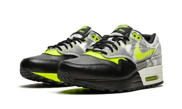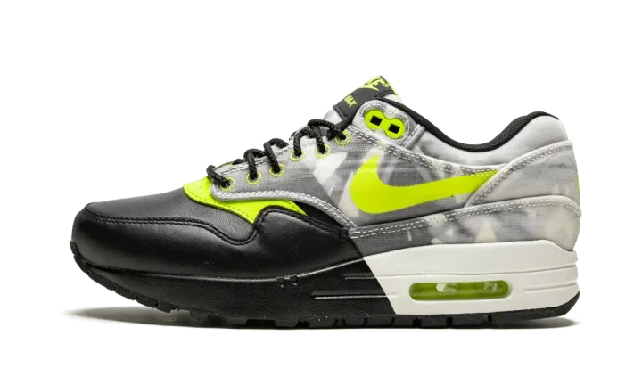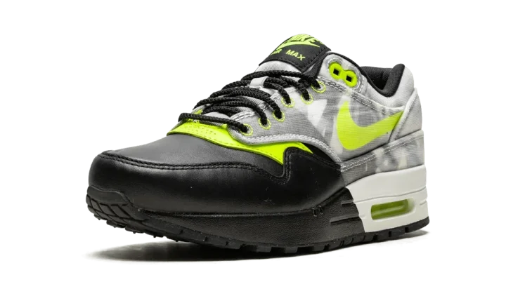 Produced in collaboration with artist Flavio Samelo and his wife Jayelle Hudson, this thoroughly unique take on the Air Max 1 for women features a geometric graphic from the artist at its base with a blacked-out toe and Volt accents.