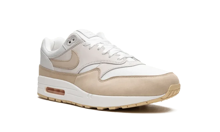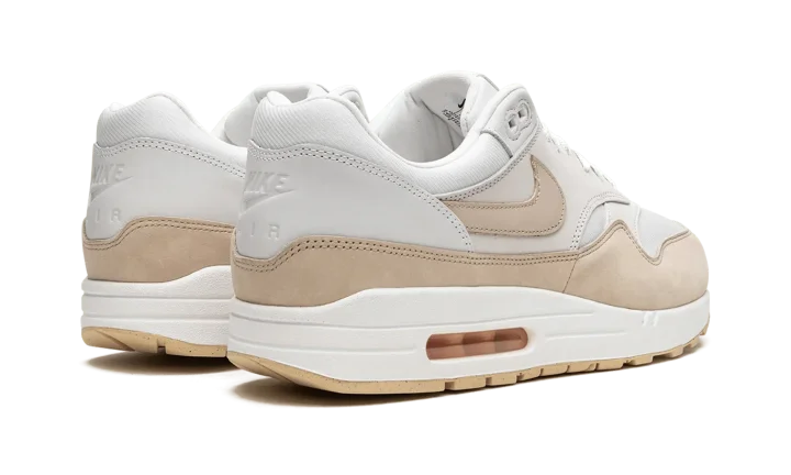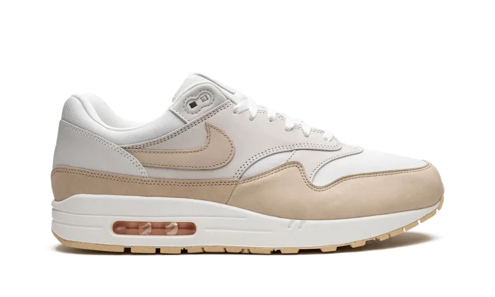The Women's Air Max 1 "Sanddrift" is a women's-exclusive colorway of the retro running shoe with a versatile, summer-ready look. The "Sanddrift" Air Max 1 features a white mesh base with tonal leather overlays on the forefoot and mid-panel. A Sanddrift leather Swoosh matches the color of the leather mudguard. A debossed "Nike Air" logo can be found on the heel and a debossed "Nike" detail lands on the tongue tag. Underfoot, a clear Air bubble in the heel of the midsole completes the look. Release date: May 5, 2023