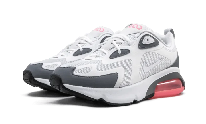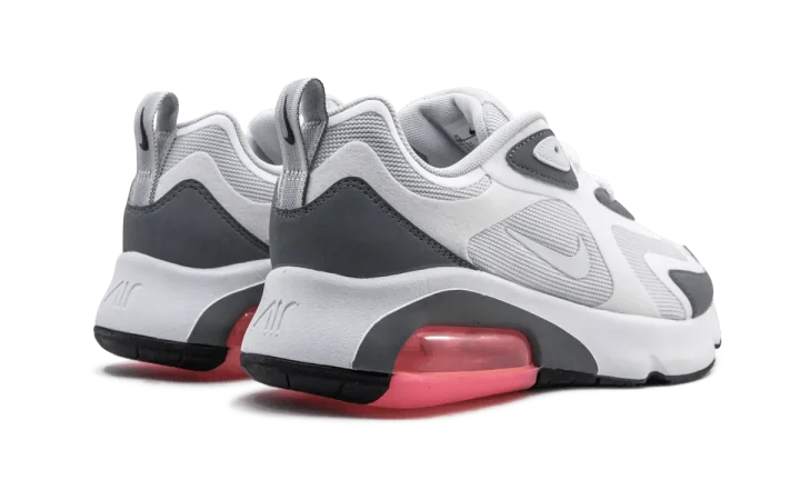 The Nike Air Max 200 is a newer style with design inspiration from energy patterns that radiate from the Earth. The lightweight shoe has a modern mesh frame with TPU material and synthetic skin that creates a sporty aesthetic. The sole unit below the foot provides remarkable cushioning with Cushlon foam and 200% more Air. The colorway is sleek and streamlined with low-key neutrals of white and light grey, while a beautiful touch of pink graces the branding on the tongue, Air bubble unit, and portion of the sole.
