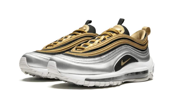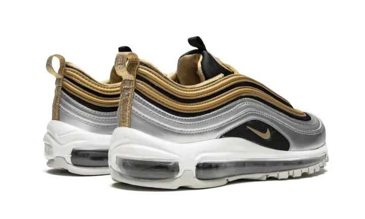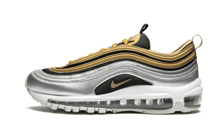 The Nike Air Max 97 is one of the most revered Nike running shoes of all time. This special edition silhouette sees color blocking at its finest. The upper sports a back mesh with silver and gold metallic overlays and a shiny silver mudguard. Red branding hits the side panel and tongue, and a foil-infused heel loop completes the pair. As it's done for over two decades, the Nike Air Max 97 hosts a foam sole with full-length Max Air cushioning.