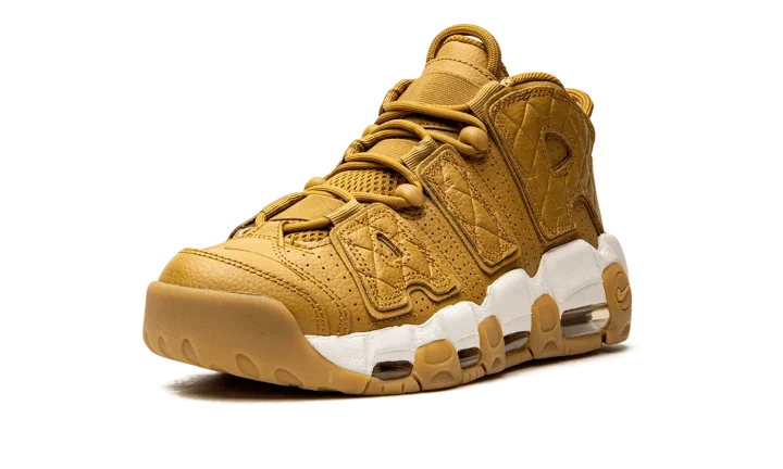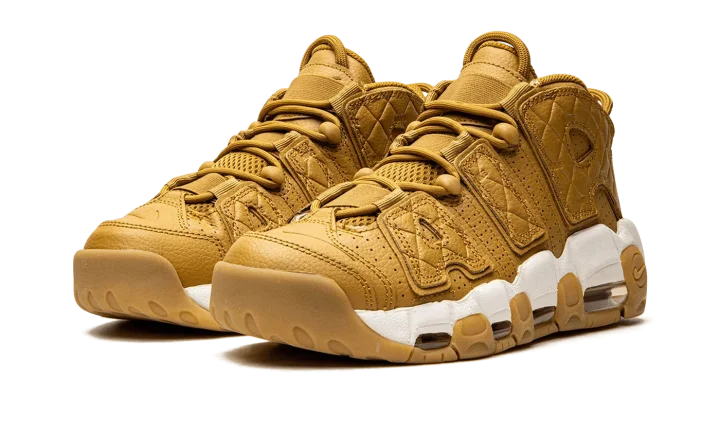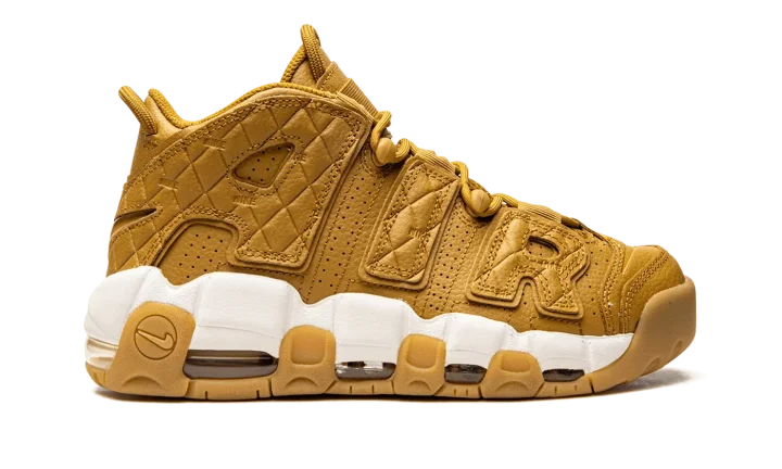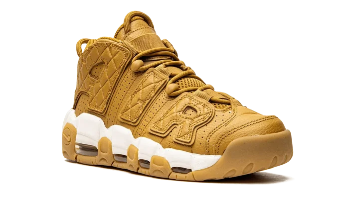 The Women's Nike Air More Uptempo "Wheat" is a women's-exclusive colorway of the retro basketball shoe with an autumn-inspired design. The "Wheat" Air More Uptempo features a monochromatic Wheat-colored perforated leather upper with tonal, graffiti-style "AIR" branding on either side of the shoe. The laces, nylon pull tab on the heel, and tongue all appear in the same golden hue as the rest of the upper. Underfoot, visible Air cushioning units from the heel to toe of the white foam midsole give the shoe a decidedly '90s-era basketball vibe. A gum rubber outsole finishes off the look. Release date: October 5, 2022