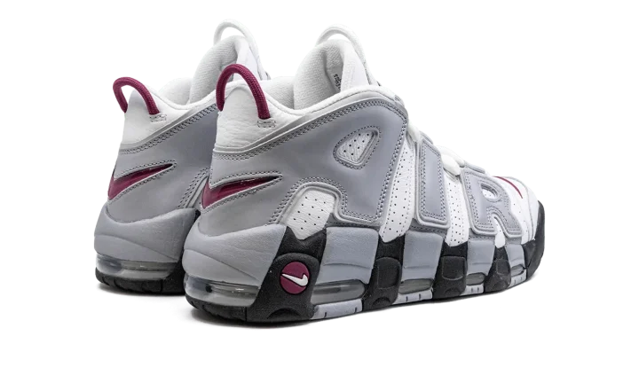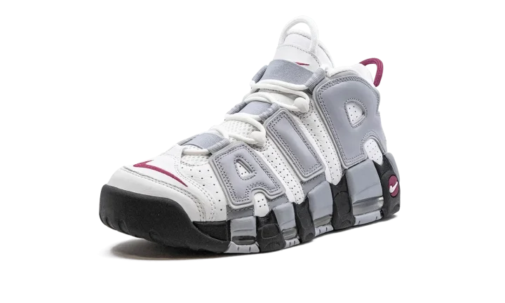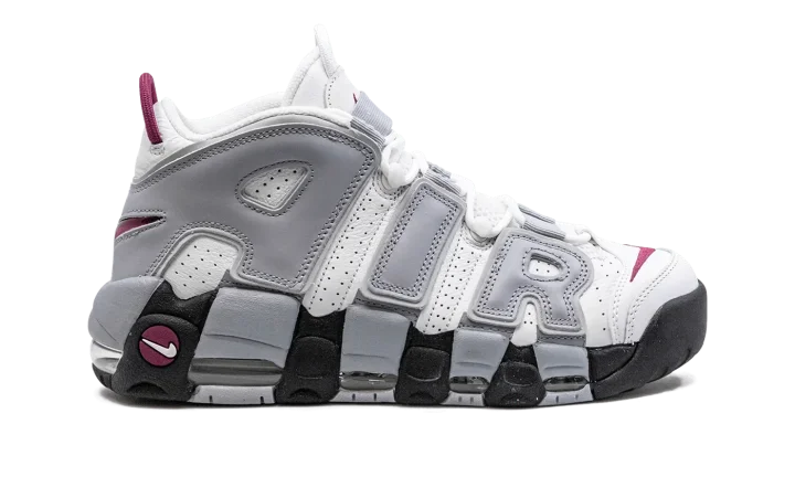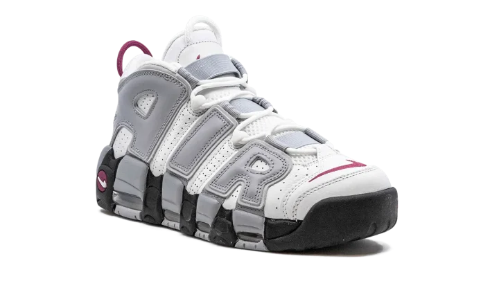 The Women's Nike Air More Uptempo "Rosewood" is a women's-exclusive colorway of the retro basketball shoe with a versatile appearance. Debuted in 1996, the Air More Uptempo was Scottie Pippen's signature shoe with the Chicago Bulls during the team's remarkable 72-win regular season in '95-96. Here, the "Rosewood" colorway features a white perforated leather construction with the model's signature, graffiti-inspired "AIR" branding in grey leather on the sides. A Rosewood-colored Swoosh appears on the toe and on the heel. Clear Air bubbles in the grey foam midsole complete the look. Release date: February 17, 2023