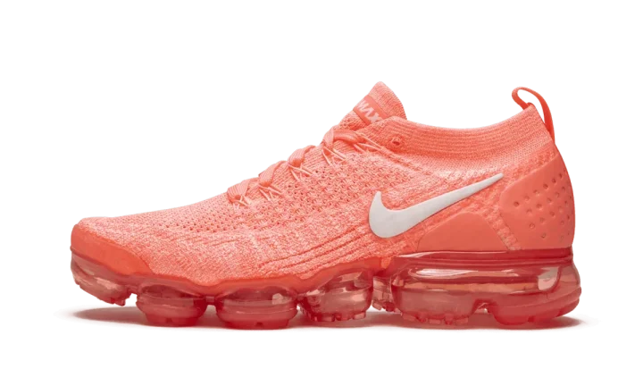 The Nike Air VaporMax Flyknit 2 continues to evolve with this dashing orange colorway. The sneaker is built with a one-piece Flyknit upper for a sock-like fit and enhanced breathability, stretch, and support. The revolutionary VaporMax Air sole brings soft, lightweight responsiveness. Built with a primarily orange upper and a translucent sole unit and heel, the Nike Air Vapormax Flyknit 2 adds light grey accents and subtle branding to the style.