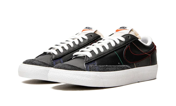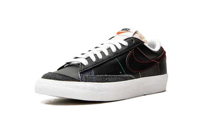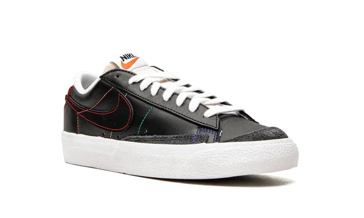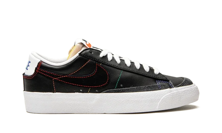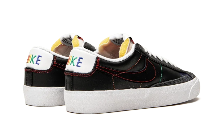 The Women's Nike Blazer Low '77 "Multicolor Stitch" is a women's-exclusive version of the popular casual shoe in a colorway that features colorful contrast stitching on its design. The "Multicolor Stitch" Blazer Low keeps a mostly subdued, neutral-colored look, save for the multicolor stitching that appears along the sides of the black leather upper and on the outline of the black leather Swoosh logo. Multicolor "Nike" detailing is embroidered onto the white leather heel tab on the back of the shoe. Nike supplies the throwback silhouette with tonal suede detailing on the toe and forefoot. A vulcanized rubber sole completes the design.