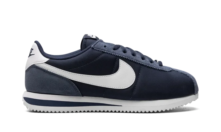 The Women's Nike Cortez "Midnight Navy" is a women's-exclusive colorway of the retro running shoe with a navy-based appearance. Since debuting in 1972, the Cortez has been among the most iconic and revered sneakers in the game. Today, the Cortez is beloved for its timeless design and comfort. The colorway features a Midnight Navy nylon construction with tonal suede overlays on the toe, eyelets, and heel. An oversized white leather Swoosh is seen on the sides. A Midnight Navy "Nike" logo is paired with a Swoosh on the heel and white "Nike" and Swoosh logos are found on the tongue. Release date: July 28, 2023
