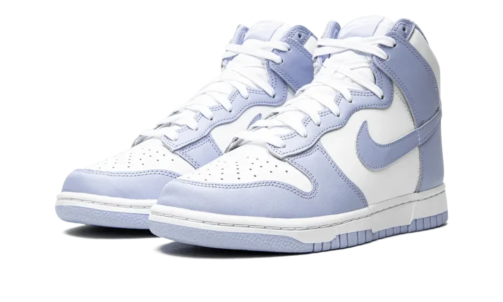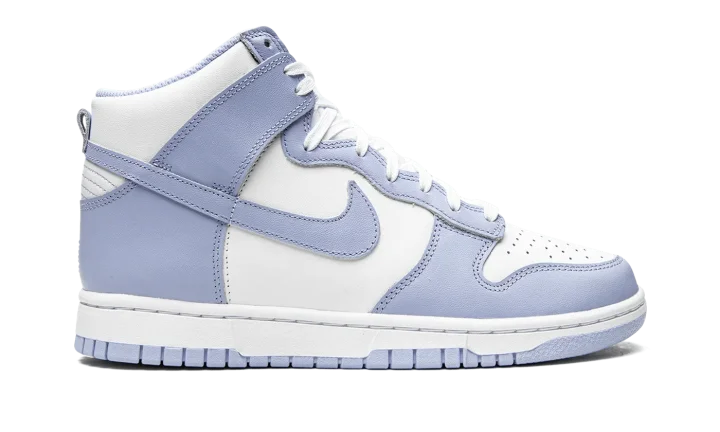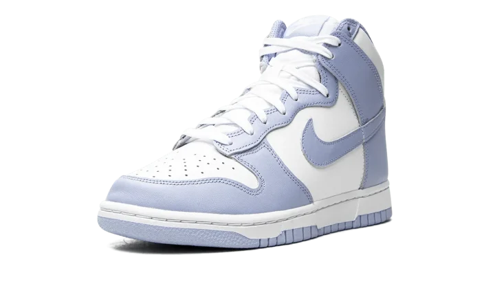 University blue/white leather Dunk High sneakers "Aluminum" from NIKE featuring signature Swoosh logo detail, panelled design, logo patch at the tongue, perforated, round toe, front lace-up fastening, ankle-length and rubber sole. These styles are supplied by a premium sneaker marketplace. Stocking only the most sought-after footwear, they source and curate some of the most hard to find sneakers from around the world..
