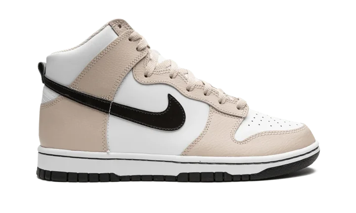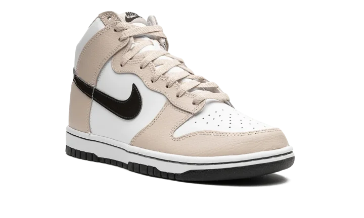 The Women's Nike Dunk High "Sanddrift" is a women's-exclusive colorway of the vintage basketball sneaker with a versatile appearance. The Dunk is one of Nike's most popular lifestyle shoes, and it's easy to see why on colorways such as the "Sanddrift." The go-anywhere shoe features a white leather base with tan leather overlays. A Velvet Brown Swoosh appears on the sides. "Nike" and Swoosh branding is found on the tongue tag. Underfoot, a white midsole and dark brown rubber outsole complete the look. Release date: February 10, 2023