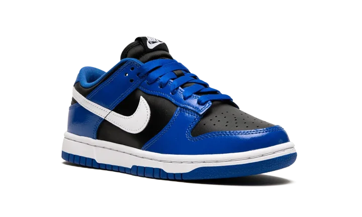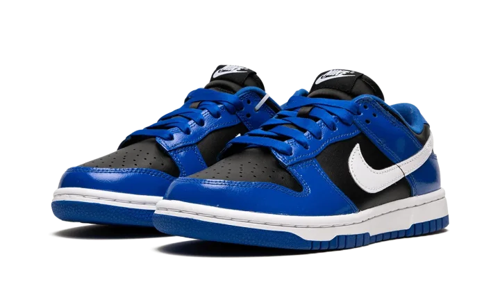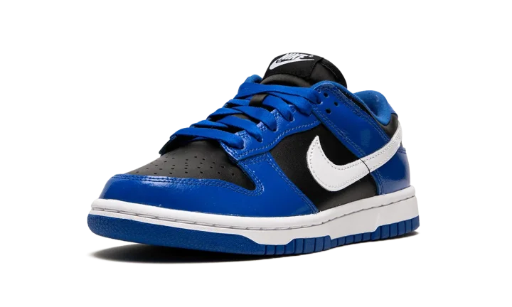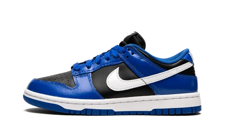 The Women's Nike Dunk Low "Game Royal" is a women's-exclusive colorway of the popular shoe with a can't-miss appearance. The "Game Royal" features a back leather base with contrasting Game Royal leather panels on the toe, forefoot, eyelets, collar, and heel. A white leather Swoosh logo can be found on either side of the shoe. "Nike" branding is embroidered on the heel and printed on the tongue tag. Underfoot, a white midsole and Game Royal rubber outsole complete the look.