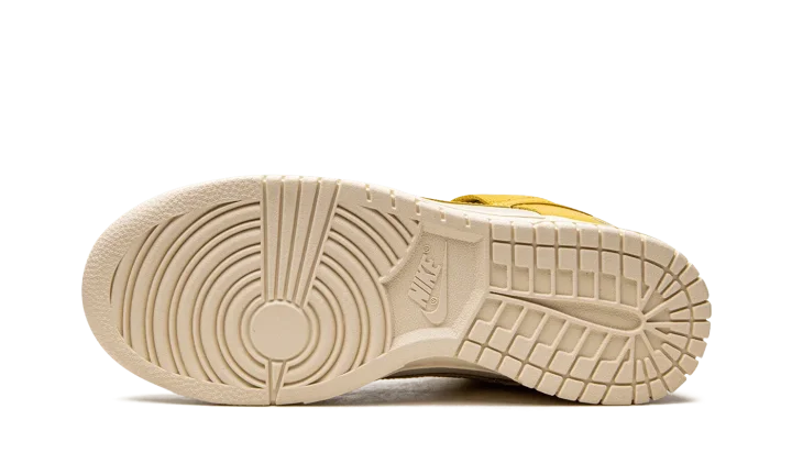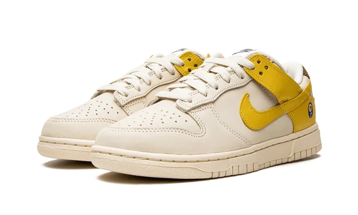Nike adds a fruit-inspired Dunk Low to the collection with this fun "Banana" colorway. The Dunk Low "Banana" features a leather construction, predominantly in a creamy shade of "Coconut Milk. Vivid Sulfur supplies the banana-esque hue for the side Swooshes and ankle heel panels. A banana appears on the shoe-specific logo found at the lateral heel. Brown suede appears on the heel tab, further nodding to the Nike Dunk's theme by representing a banana's stem.