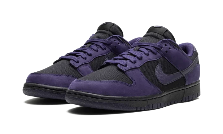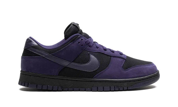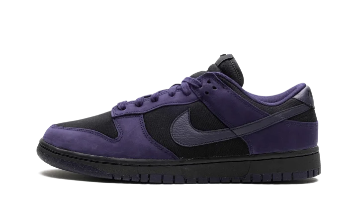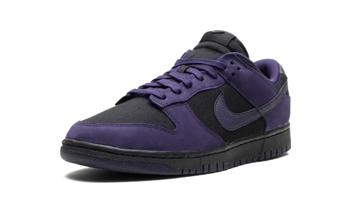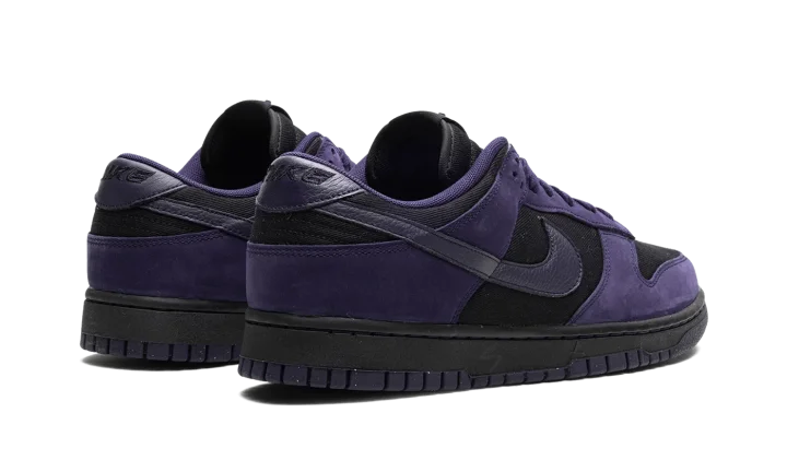 The Women's Nike Dunk Low LX "Purple Ink" is a women's-exclusive colorway of the retro sneaker with an interesting combination of materials. Dubbed the "Purple Ink," the Dunk Low LX features a black canvas base with Purple Ink nubuck leather overlays. More purple accenting can be seen on the Swoosh on the tongue and on the "Nike" embroidery on the heel. A black rubber midsole is paired with a purple outsole, which also features white speckling. Release date: September 23, 2023