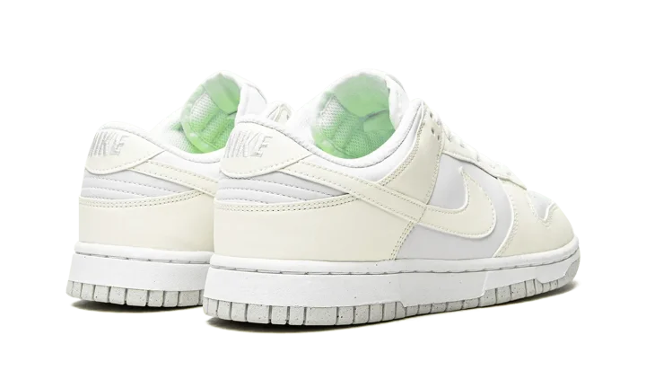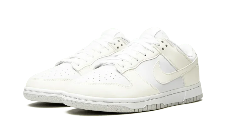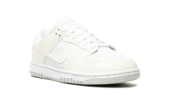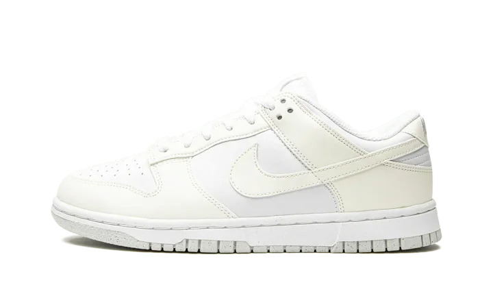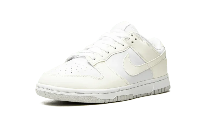 The Women's Nike Dunk Low Next Nature "White/Sail" is an extremely versatile colorway of the classic sneaker constructed from at least 20% recycled content by weight. The "White/Sail" is a shoe from Nike's "Move to Zero" initiative that aims to reduce the brand's carbon footprint. The upper features a white leather construction with Sail leather overlays and Swoosh branding on the sides. A two-tone, white midsole and Sail rubber outsole finish off the appealing Dunk Low for women.