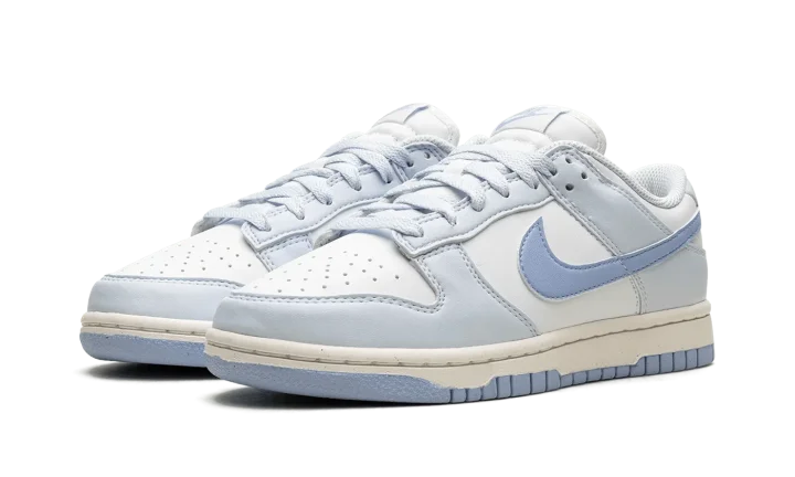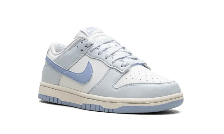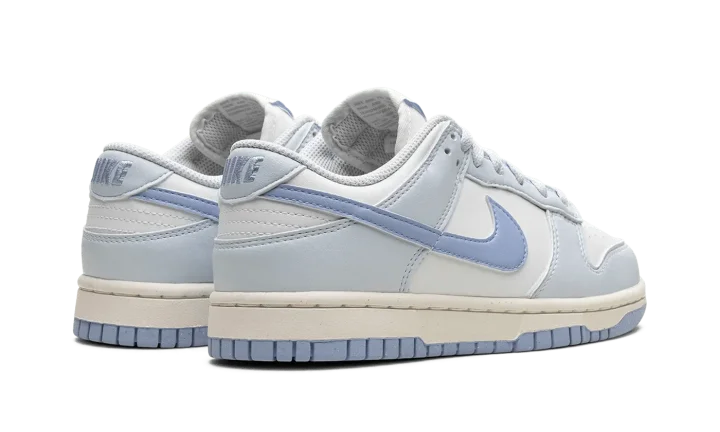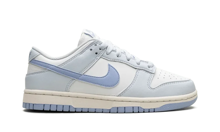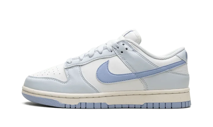 The Women's Nike Dunk Low Next Nature "Blue Tint" is a women's-exclusive version of the retro basketball sneaker made with environmentally-friendly materials. The upper features a white leather base with University Blue leather overlay panels. A Blue Tint leather Swoosh can be found on either side of the shoe and "Nike" branding is embroidered on the heel. Classic "Nike" and Swoosh detailing is found on the tongue tag. A white rubber midsole and royal outsole made with recycled Nike Grind material completes the look. Release date: September 8, 2023