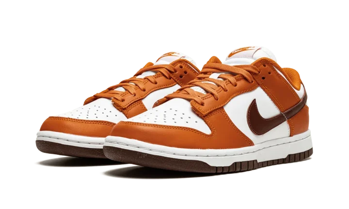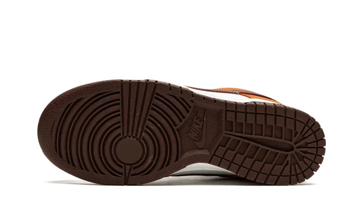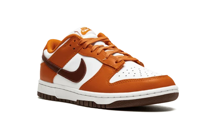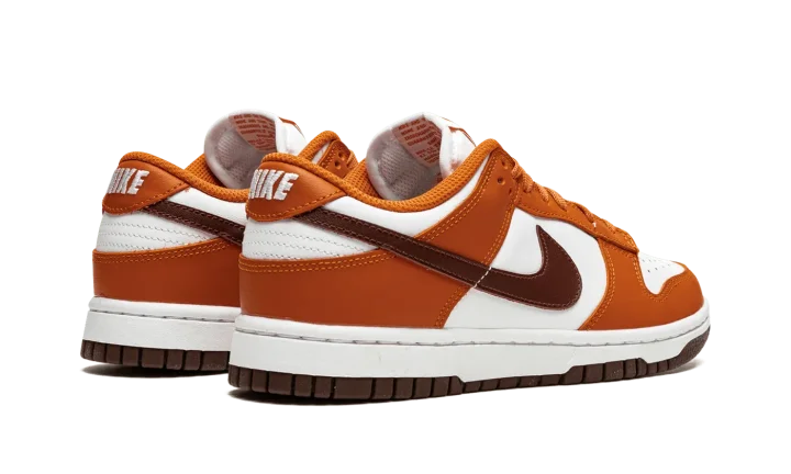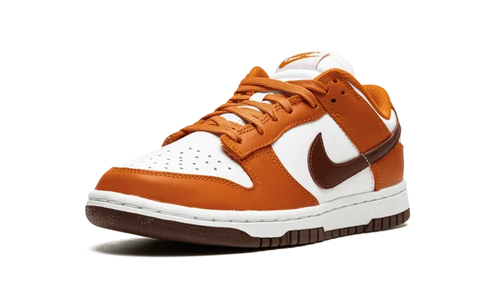 The Women's Nike Dunk Low "Bronze Eclipse" is a women's-exclusive colorway of the vintage basketball shoe that arrives in unique, earth tone colors for a versatile, always-in-style look. Reminiscent of Dunk colorways from the early-to-mid 2000s, the 'Bronze Eclipse" features a white leather base with contrasting Sport Spice-colored leather overlays on the forefoot, eyelets, collar, and heel. A Bronze Eclipse leather Swoosh resides on either side of the shoe. A classic "Nike" logo is embroidered on the heel and burnt orange-colored "Nike" and Swoosh branding is printed on the white tag on the white nylon tongue. Burnt Orange laces complement the shoe's autumn-ready appearance. Release date: November 24, 2021