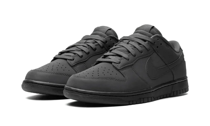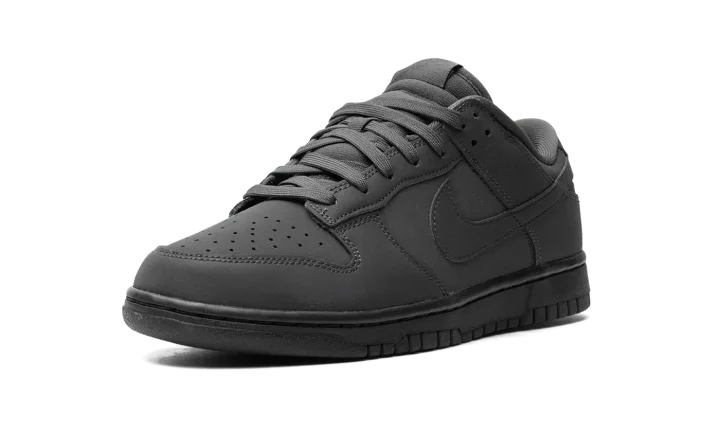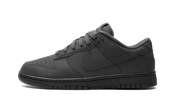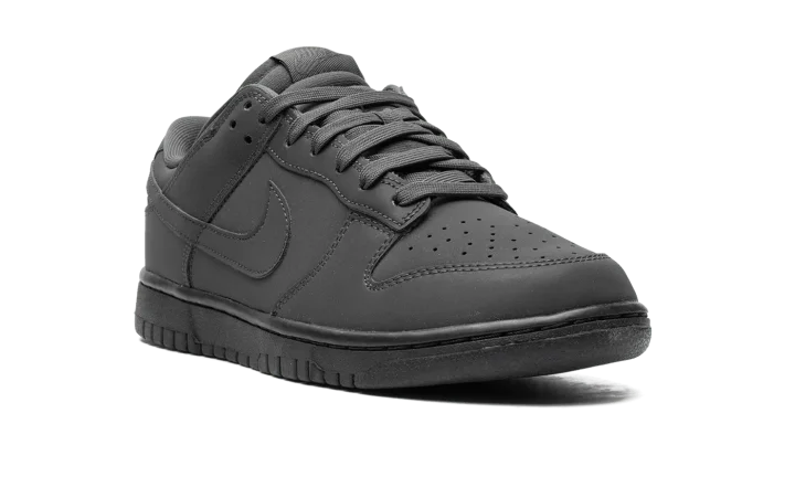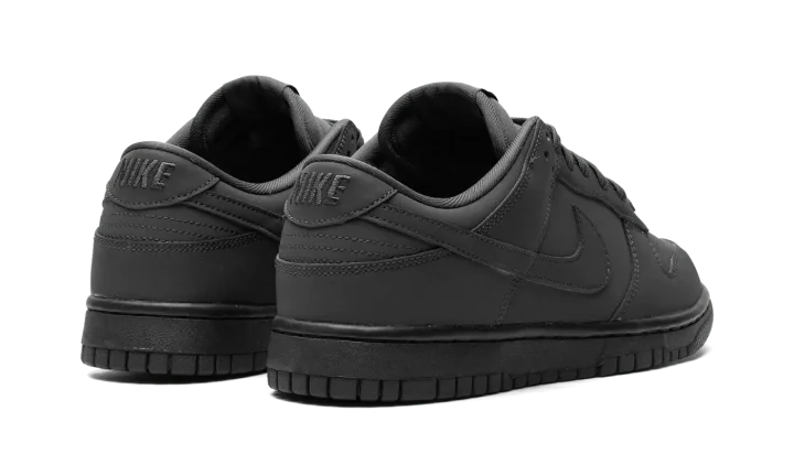 The Women's Nike Dunk Low "Cyber" is a women's-exclusive colorway of the retro basketball shoe with a reflective finish. Drawing inspiration from cyberpunk aesthetics, the Dunk Low "Cyber" has a synthetic leather construction in an Anthracite hue. While appearing to be simply a matte black colorway at first, the side Swoosh, toe, eyestay, and ankle panels, and heel tab are reflective, and shine when exposed to light in the dark. A "Nike" embroidery is found on the heel, while "Nike" and Swoosh logos appear on the tongue tag. An Anthracite midsole and outsole complete the look of the monochromatic yet reflective colorway. Release date: January 12, 2024