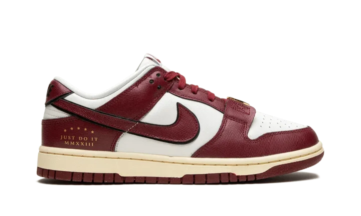 The Women's Nike Dunk Low "Just Do It - Team Red" is a women's-exclusive colorway of the vintage basketball shoe that celebrates Nike's famous slogan. As one could imagine by its nickname, this colorway theme nods to Nike's "Just Do It" catchphrase as it is stamped on the lateral side of the heel. "Just Do It" reappears on the footbed, as well. As for the rest of the shoe's design, the upper features a textured white leather base with Team Red overlays and Swoosh branding. Classic "Nike" detailing is found on the tongue tag. A gold lace medallion on each shoe with engraved "Nike" branding completes the look. Release date: February 23, 2023