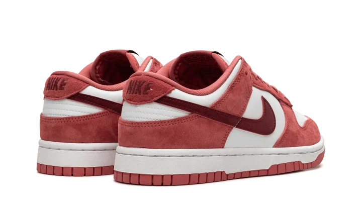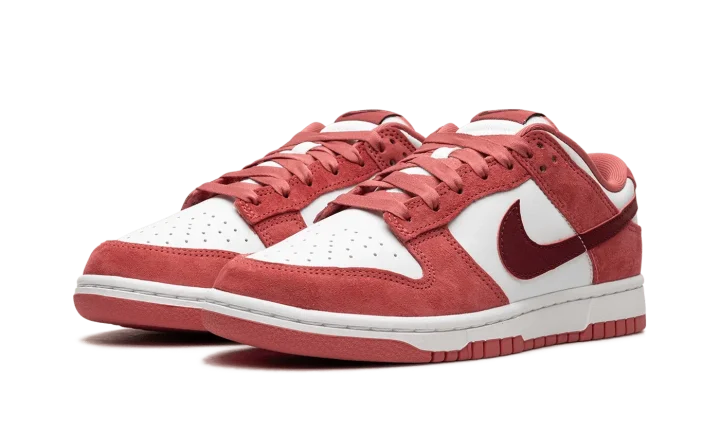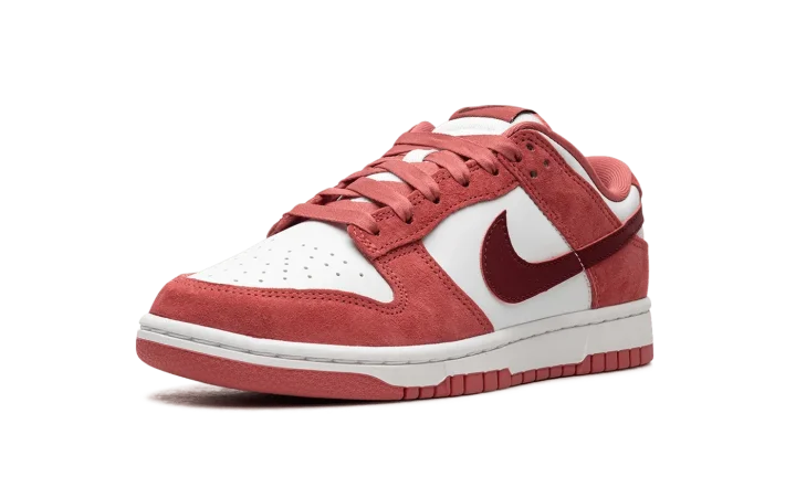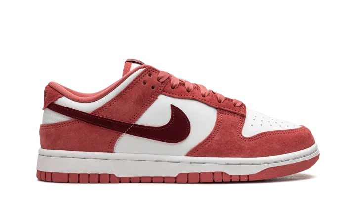 The Women's Nike Dunk Low "Valentine's Day" is a women's-exclusive colorway of the retro basketball shoe made specifically for the February holiday. Every year, Nike releases a collection of sneakers inspired by Valentine's Day, and 2024 is no exception. The "Valentine's Day" Dunk Low features a white leather base with pinkish-red suede overlays and a dark red suede Swoosh. Red ribbon-like laces add to the shoe's Valentine's Day inspired look. Classic "Nike" detailing is embroidered on the heel and printed on the tongue tag. Underfoot, a white midsole and red outsole complete lovable look. Release date: January 29, 2024