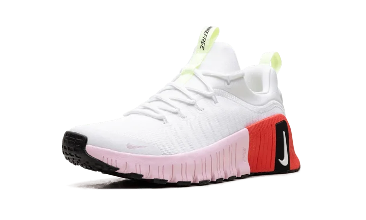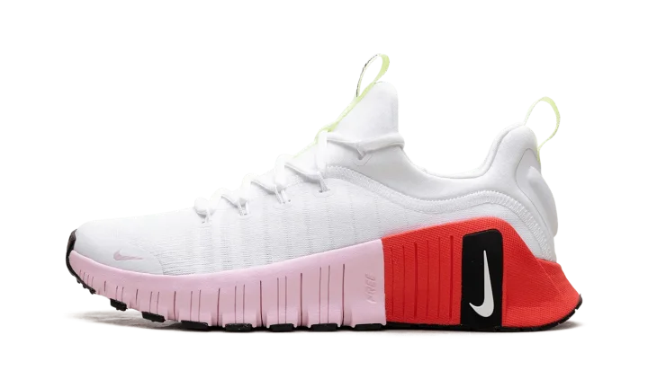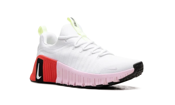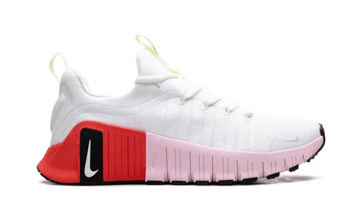 The Nike Free Metcon 6 is your most adaptable and responsive trainer, seamlessly bridging the flexibility of Nike Free for dynamic movement with the stable foundation of the Metcon line for lifting. This women's edition is energized by a vibrant combination of neon and bright accents on a clean white canvas.