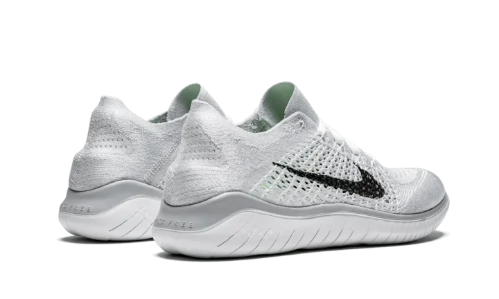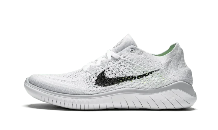 The Nike Free RN 2017 is a performance running shoe with reduced layers and a lighter weight. Mimicking the feeling of barefoot running, this women's shoe is the lightest in the Free RN franchise. The pair comes with a white Flyknit upper, a black Nike Swoosh, and platinum detailing just above the midsole. The sock-like fit has been updated with more stretch and the lightweight sole supports the foot's natural movement.