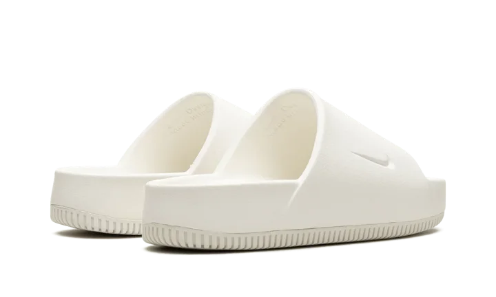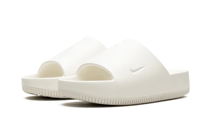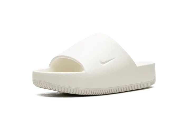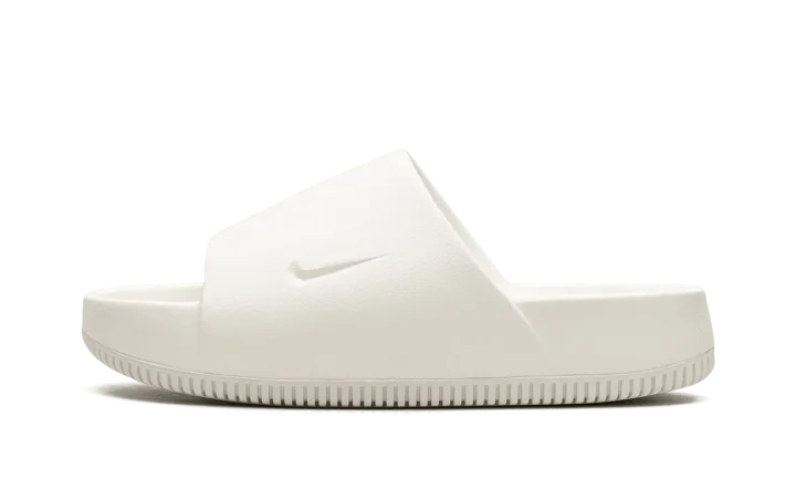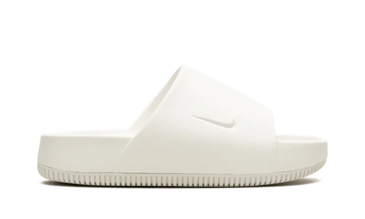 The Women's Nike Calm Slide "Sail" is the women's sizing for this versatile colorway of the stylish slip-on sandal. The Calm Slide debuted in 2023 and is a footwear option for casual wear. Tthe Calm Slide is constructed from a one-piece foam mold. The midfoot strap that supports the sandal features a debossed Swoosh on the side. Underneath, a thick foam cushioning footbed provides a comfortable ride. Release date: July 14, 2023