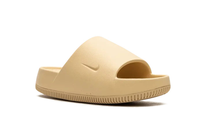The Women's Nike Calm Slide "Sesame" is the women's sizing of the monochromatic tan colorway of the slip-on sandal. The Calm Slide debuted in 2023 and is a versatile footwear option for casual wear. This look for the Calm Slide is constructed from a Sesame-colored one-piece foam mold. The midfoot strap that supports the sandal features a debossed Swoosh on the side. Underneath, a thick foam cushioning footbed provides a comfortable ride. Release date: July 14, 2023