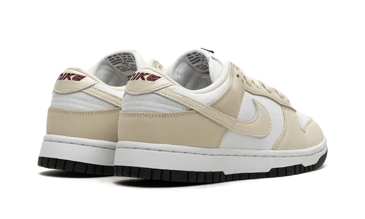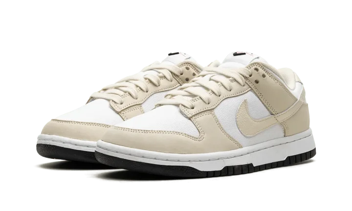The Women's Nike Dunk Low LX "Coconut Milk" is a women's-exclusive colorway of the retro basketball sneaker with a unique combination of materials. The versatile "Coconut Milk" Dunk Low LX features a white canvas base and Coconut Milk-colored leather overlays and Swoosh branding. Fiery orange "Nike" detailing is embroidered on the heel and a black Swoosh logo appears on the tongue. The white rubber midsole and black rubber outsole complete the look.