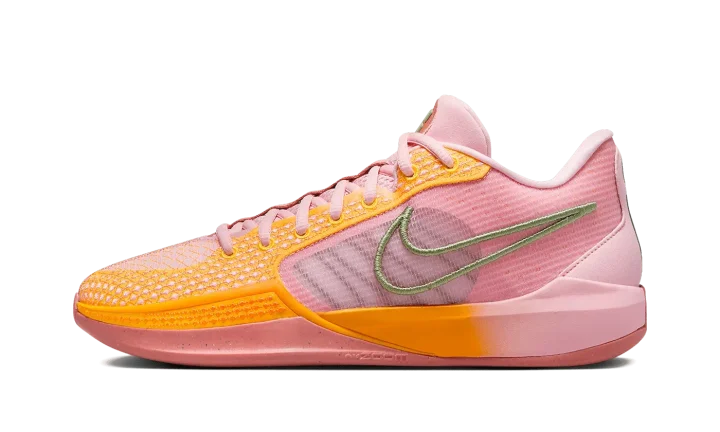 The Women's Nike Sabrina 1 "West Coast Roots" is a pink-based colorway of WNBA star Sabrina Ionescu's first signature shoe inspired by her California upbringing. The upper features pink mesh on the sides and a orange-and-pink mesh and textile on the toe and eyestay panel. An Oil Green outline Swoosh can be found on the lateral side and Ionescu's signature "S" branding appears on the tongue. Underfoot, Zoom Air cushioning in the forefoot of the Nike React midsole provides a responsive ride on or off the basketball court. Release date: December 6, 2023
