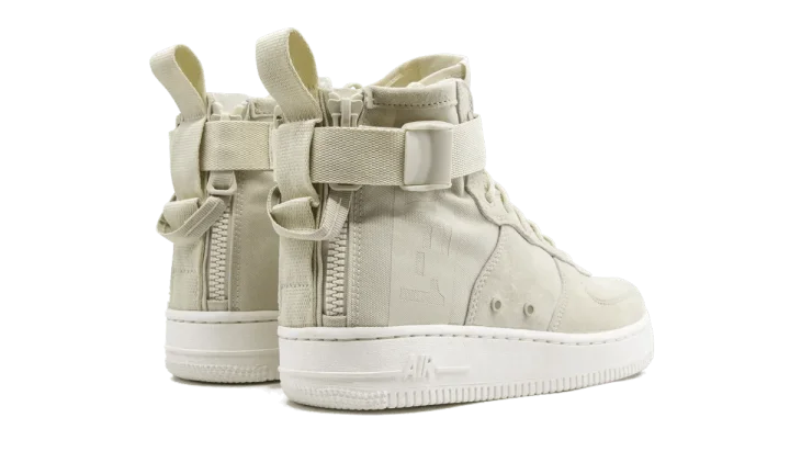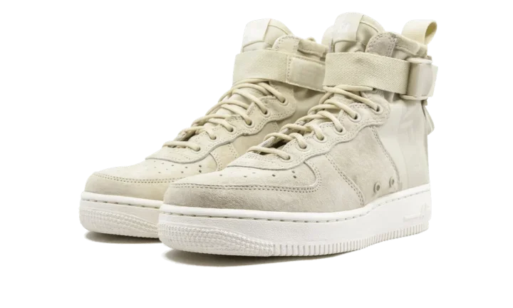 The Nike SF AF1 Mid fuses two of Nike's most iconic shoes for winter, the Special Field Boot and the Air Force 1. Available for women, what was once a boot built for ultimate urban utility has evolved into a mid-top silhouette. It has adjustable ankle straps, premium suede, and ripstop ballistic nylon. The Special Field Air Force 1 Mid also has a double-zipper entry at the heel and text on the lateral side that displays the shoe's technical specifications.