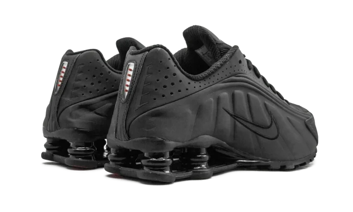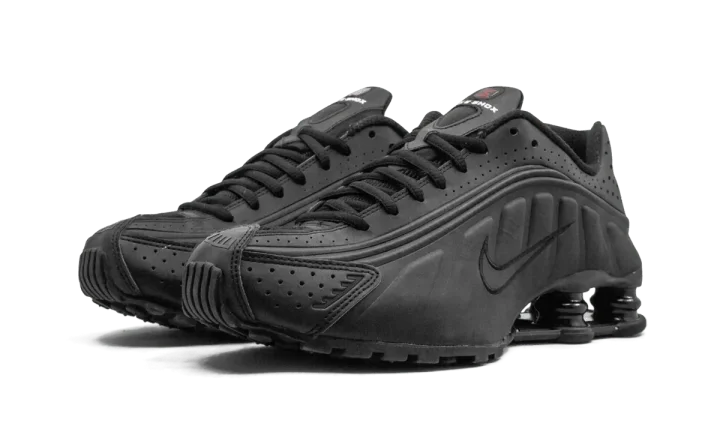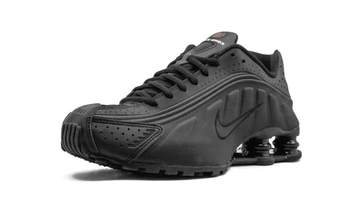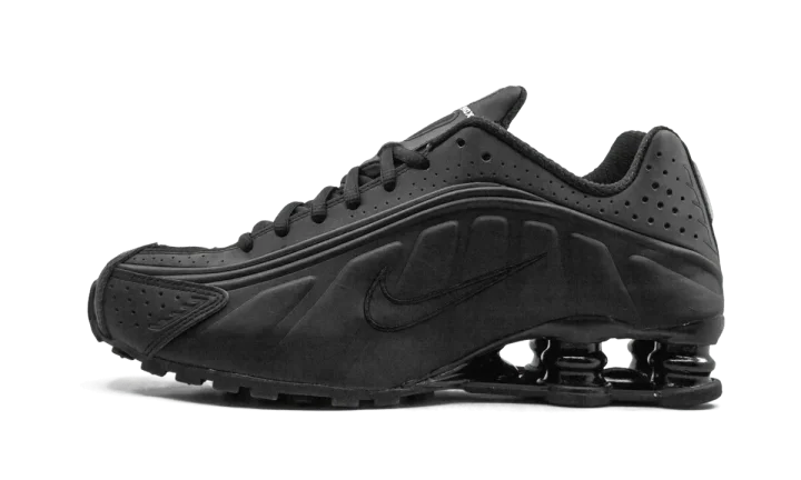 The Nike Shox R4 "Black" is a monochromatic black colorway of the retro shoe. Debuted in 2000, the Nike Shox R4 starred in Nike's "Boing, Boing" ad campaign back in the day. On this colorway, the model features an all-black appearance, with a smooth and dotted black leather construction. Classic Swoosh branding appears in black on either side of the shoe. Underfoot, four Shox columns in the heel provide a springy, responsive ride. Release date: April 3, 2024