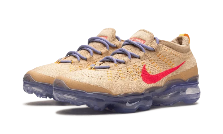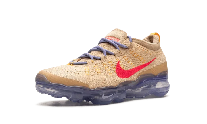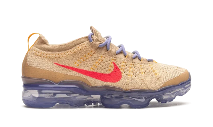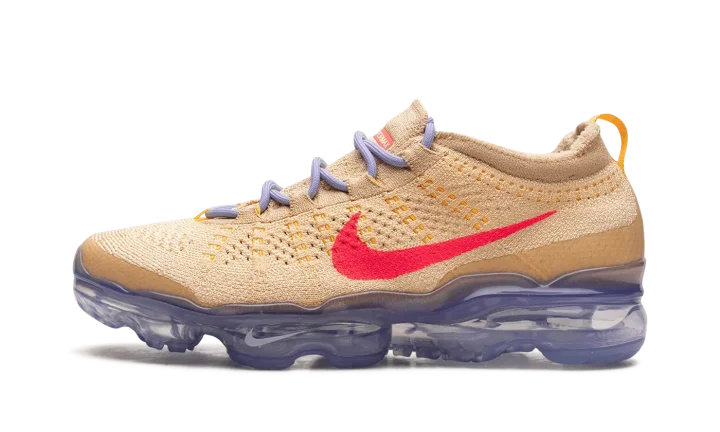The Nike Vapormax 2023 Flyknit "Pale Vanilla" is a versatile, go-anywhere colorway of the progressively designed shoe. The Vapormax 2023 Flyknit in "Pale Vanilla" features a tan Flyknit construction that's both lightweight and breathable. A pink Swoosh appears on the sides of the shoe while "Nike Vapormax" branding is found on the tongue. In spite of the shoe's sock-like build, the shoe is outfitted with purple laces that pop against the tan design. Nike's Vapormax cushioning technology appears in pod-like form on the button of the shoe, giving the sneaker an ultra responsive feel. Release date: May 18, 2023