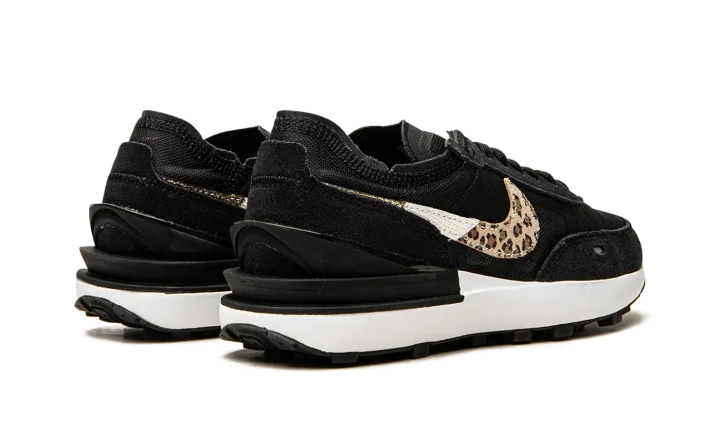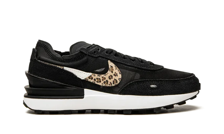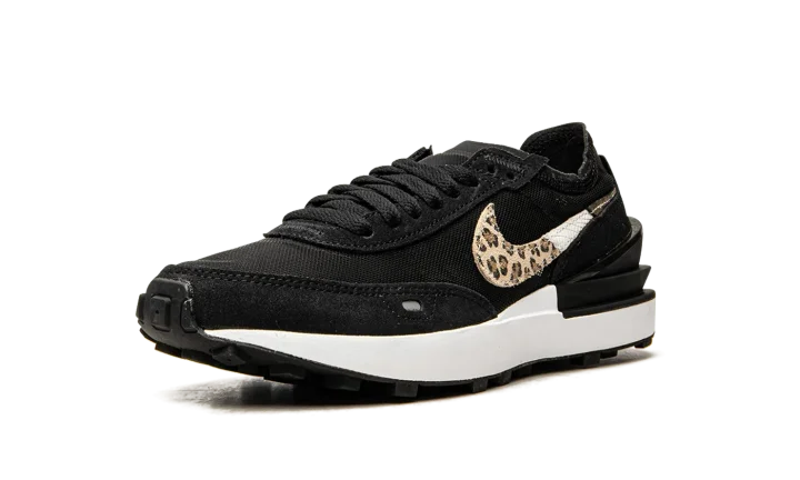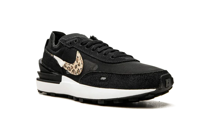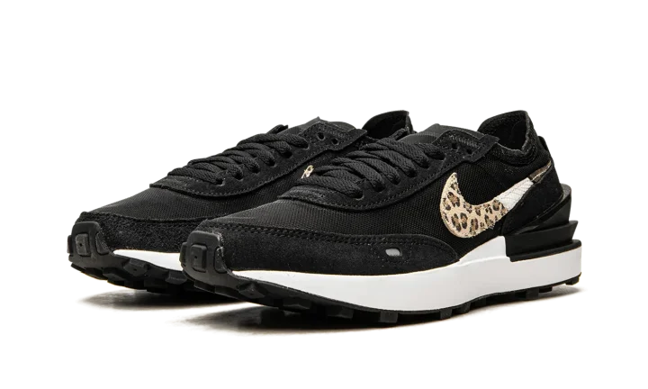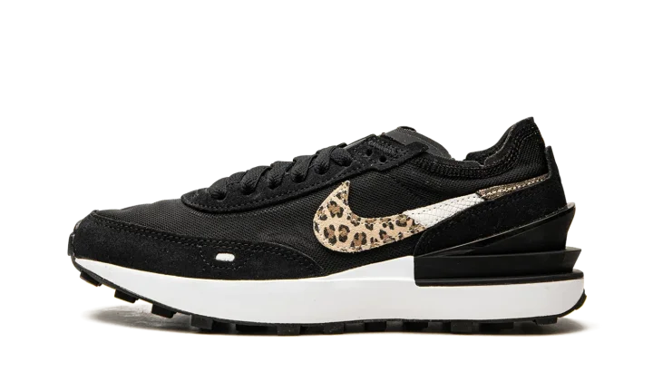 The Nike Waffle One "Leopard Pack - Black" is a lifestyle shoe that not only embraces Nike's rich heritage in running, but also adds in fresh innovations to give it a modern twist. Done in women's sizing, this Waffle One style is constructed with a black, transparent mesh upper with overlays, eyestays, and a heel tab in premium suede. Taking center stage is the mixed material, leopard-printed Swoosh on the side. Finally, rounding out the Nike sneaker is a black stacked heel counter joined with a white midsole and black rubber outsole.