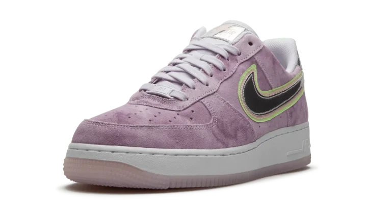 The Women's Nike Air Force 1 Low "P(Her)spective" comes correct in a soothing colorway that is fitted for women's sizing. The "P(Her)spective" was released by Nike in Summer 2020 and features an all-suede upper in what The Swoosh is calling "Violet Star." The supple material appears on the perforated toe, mid-panel, and heel. A Metallic Silver heel tab displays bold neon green "Nike Air" branding on the back of the shoe. The flashy design reappears on the Swoosh located on the mid-panel, which is also outlined in the same neon hue. Neutral cotton laces and a "Nike Air" patch on the white nylon tongue complete the look of this well-appointed low-top shoe.