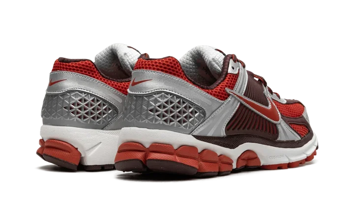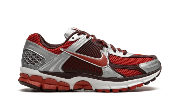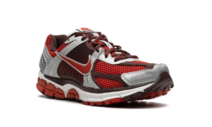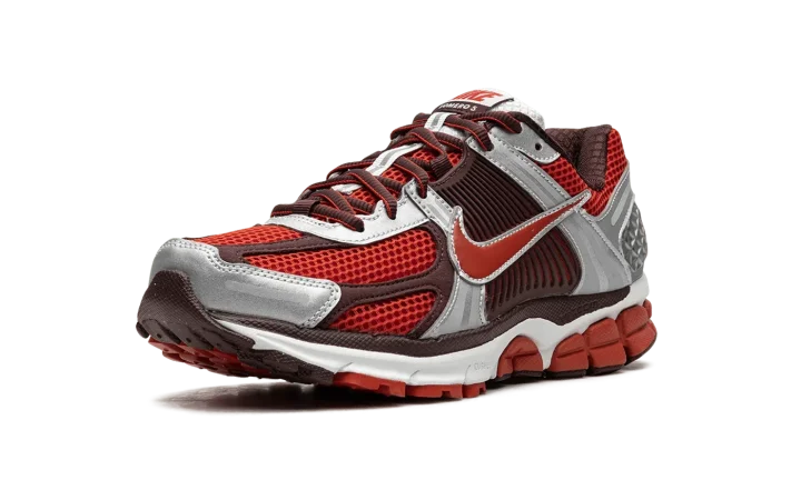 The Nike Zoom Vomero 5 "Team Red" is a great look for the retro running shoe with a unique and eye-catching red and silver color scheme. The Nike Zoom Vomero 5 was originally released in the early 2010s before it was brought back in late 2022 and early 2023 as part of the Y2K-era sneaker trend. The colorway features a Team Red mesh construction with Metallic Silver leather overlays. A red Swoosh appears on the sides. "Nike Vomero" detailing is seen on the tongue.