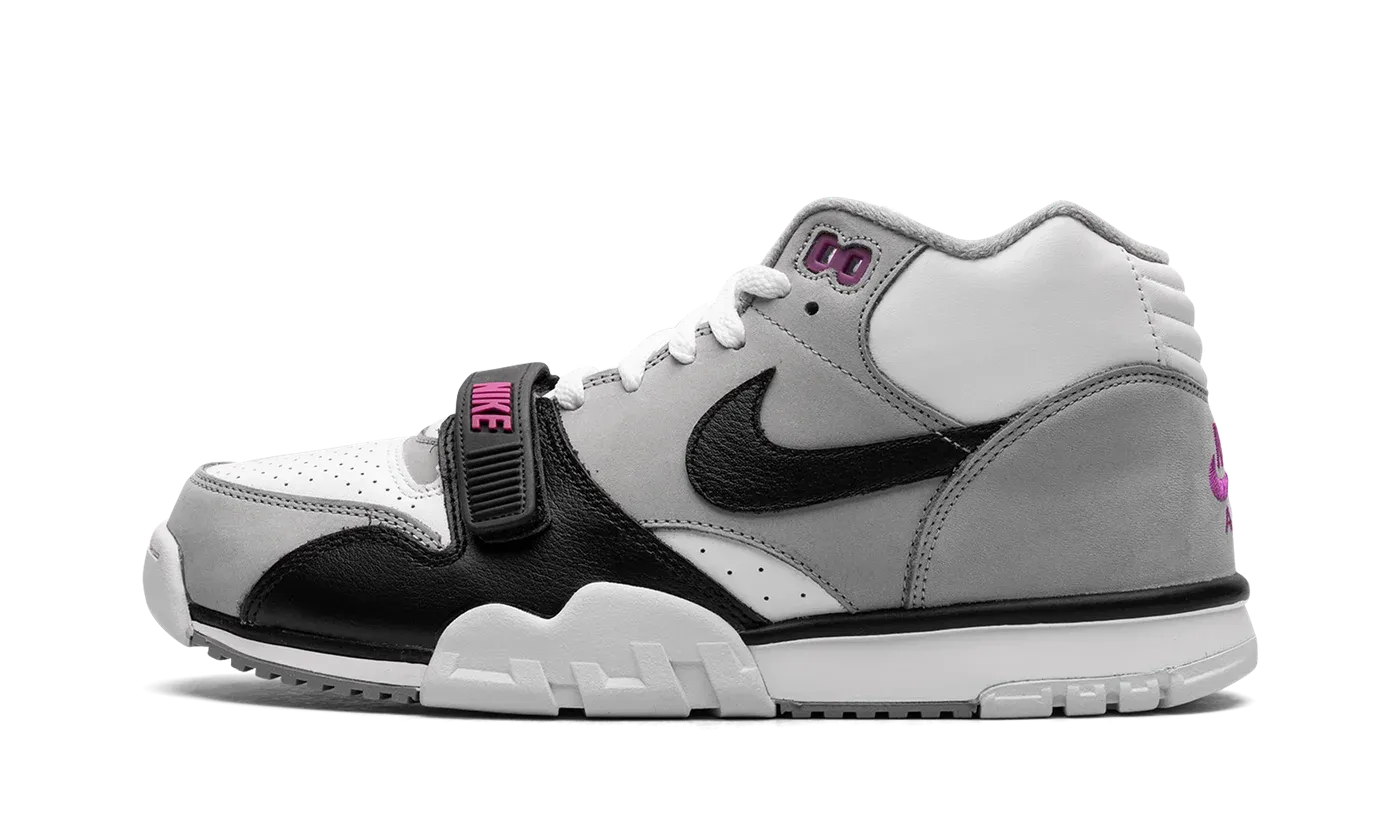 The Nike Air Trainer 1 "Hyper Violet" is an easy-wearing colorway of the retro cross-training sneaker. The Air Trainer 1 in "Hyper Violet" features a white leather base with Medium Grey nubuck overlays. A black leather Swoosh can be seen on the sides and classic "Nike Air" branding appears on the heel. The black leather midfoot strap dons Hyper Violet "Nike" branding. Underfoot, the white midsole and outsole complete the look. Release date: June 24, 2023