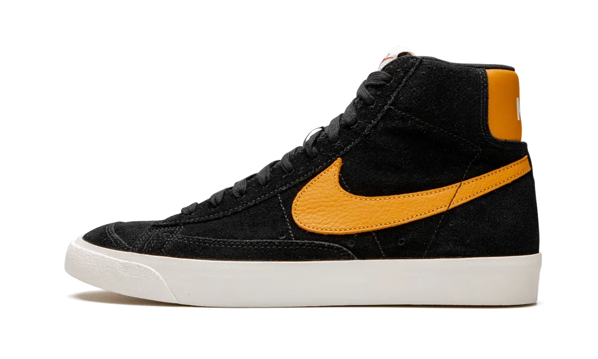 The Nike Blazer '77 Mid Vintage receives a fittingly vintage-looking makeover of the classic basketball sneaker. The upper of this mid-top style is done with a supple black suede, and a leather Swoosh and heel tab in bright orange create the two-tone look. Further detailing includes an exposed foam tongue with a traditional Nike tag and tonal stitching across each panel, furthering a refined aesthetic on the nostalgic pair. The sneaker design is then finalized with a sail midsole below.