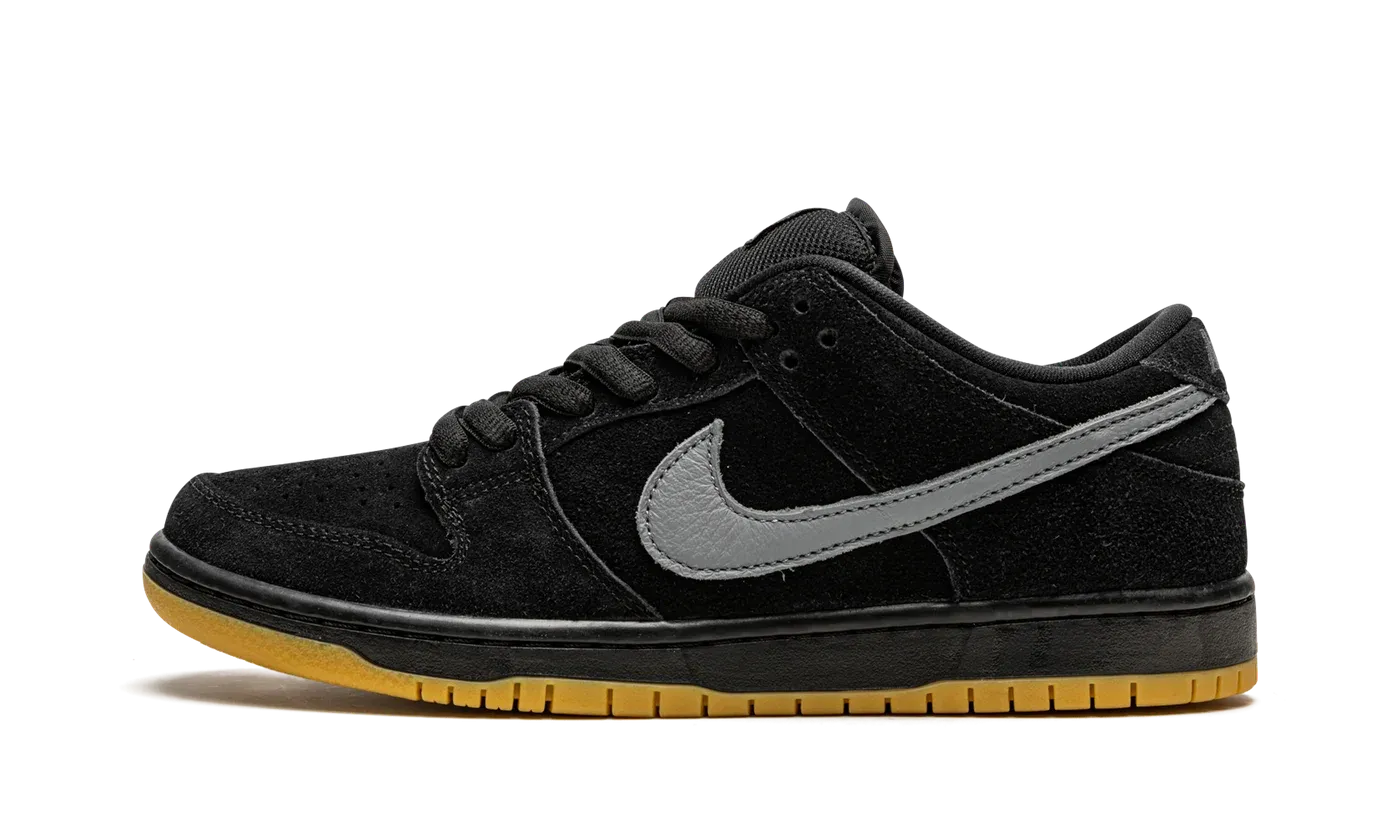 The Nike SB Dunk Low Pro "Fog" is a Fall 2021 release of the skate shoe that is essentially a low-top version of the original high-top "Fog" colorway from 2005. The first SB Dunk "Fog" appeared on the high-top version of the SB Dunk in the mid-aughts, and was brought back in true-to-original fashion in 2021, albeit on the popular low-top Dunk. The upper features a hairy black suede appearance that is contrasted by a Cool Grey-colored leather Swoosh on the sides. Grey "Nike" branding is embroidered on the heel and grey "SB Dunk" detailing is printed on the black nylon tongue tag on the black, puffy mesh tongue. Finishing touches include a black midsole and gum-colored rubber outsole.